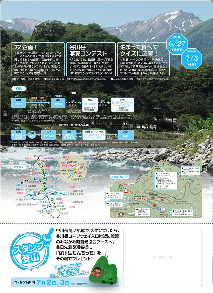 谷川岳ウィーク期間中(6月27日~7月2日)、みなかみ町内全23施設を1泊7,200円宿泊!
