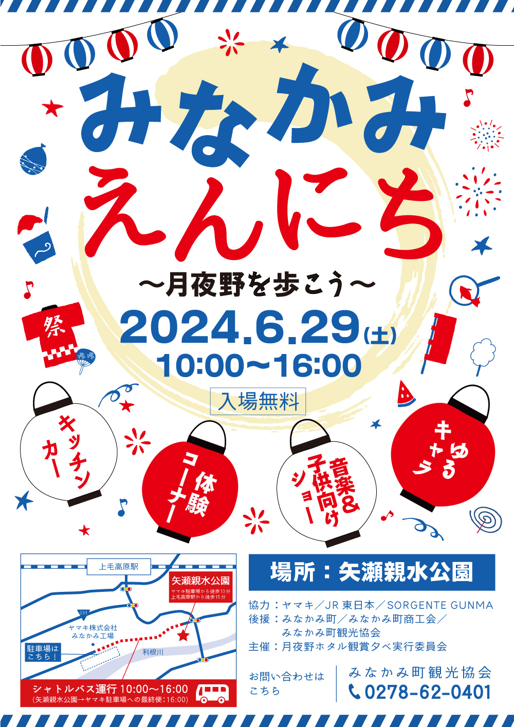「みなかみえんにち」が、矢瀬親水公園にて開催されます。